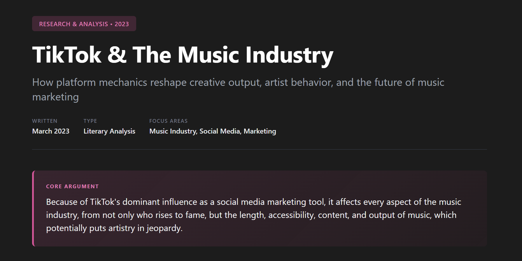 Because of TikTok’s dominant influence as a social media marketing tool, it affects every aspect of the music industry, from not only who rises to fame, but the length, accessibility, content, and output of music, which potentially puts artistry in jeopardy.